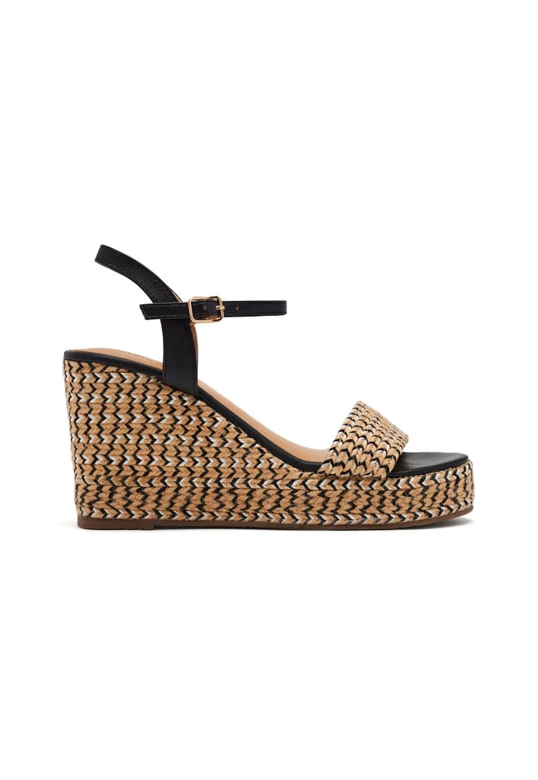 Характеристики Тип: с платформа Цвят: черен Материал: синтетичен Принт: с принт Стил: ежедневен Тип на подметката: полускосена платформа Закопчаване: катарама Състав Горна част: синтетика Материал интериор: различни материали Материал подметка: други материали …