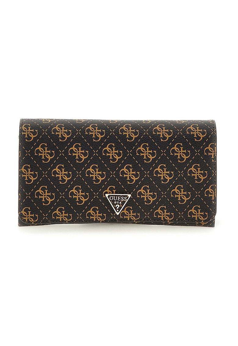 Портмоне от еко кожа с верижка и монограм – Тъмнокафяв/Карамел GUESS
