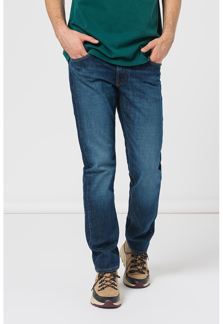Характеристики Цвят: тъмносин Материал: дънков плат Принт: без принт Кройка: стандартна – права Талия: средновисока Дължина: дълъг Джобове: 5 Закопчаване: цип Състав Външна част: 98% памук – 2% еластан Информация за модел Моделът е облечен с размер W32-L32. Размер на модела: 190 …