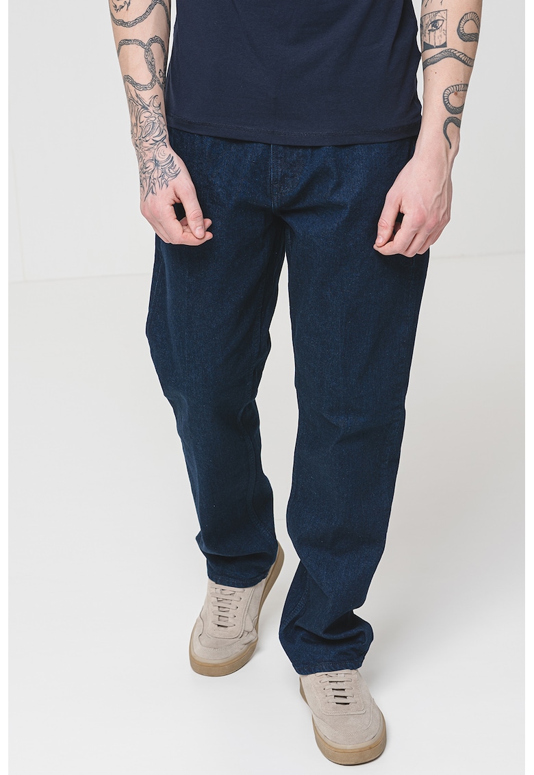 Характеристики Цвят: тъмносин Материал: дънков плат Принт: без принт Кройка: права Талия: ниска Дължина: дълъг Закопчаване: цип Състав Външна част: 91% памук – 8% полиестер – 1% еластан Информация за модел Моделът е облечен с размер W32-L32. Размер на модела: 188 cm височина – 98 cm …