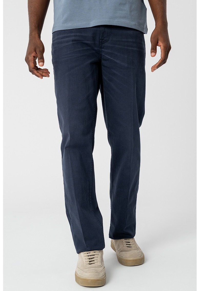 Характеристики Цвят: тъмносин Материал: памук – еластан Принт: без принт Кройка: права Талия: ниска Дължина: дълъг Джобове: 5 Закопчаване: цип Състав Външна част: 92% памук – 6% еластомелестер – 2% еластан Информация за модел Моделът е облечен с размер W32-L32. Размер на модела: …