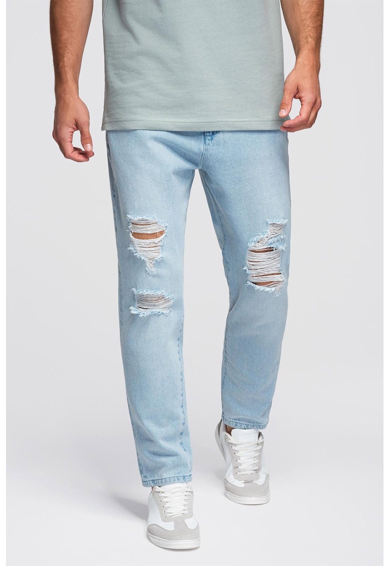 Прави дънки с протрити зони OMBRE