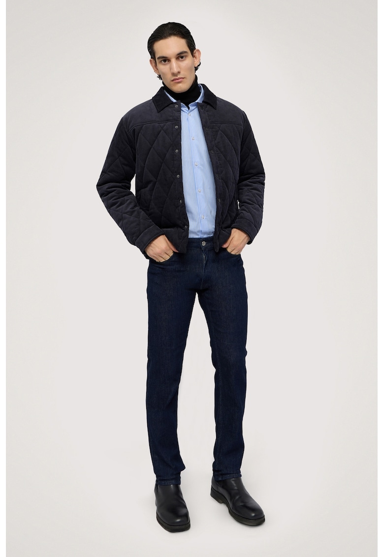 Характеристики Цвят: ултрамарин синьо Материал: дънков плат Принт: без принт Кройка: стандартна – права Талия: средновисока Дължина: дълъг Джобове: 5 Закопчаване: цип Състав Външна част: 99% памук – 1% еластан Апликации: 65% полиестер – 35% памук