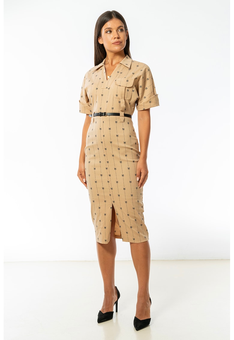 Прилепнала рокля Camila с монограм – Черен/Праскова Hermosa
