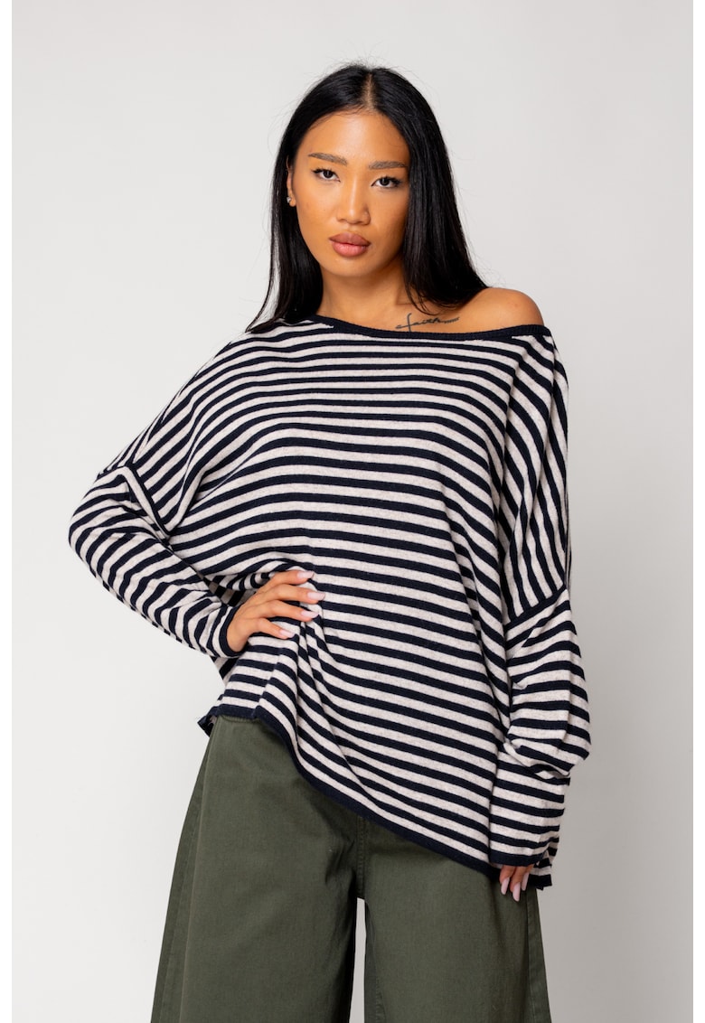 Пуловер на райета от смес от вълна и кашмир Бежов/Тъмносин 18059 – Бежов/Тъмносин uFIT