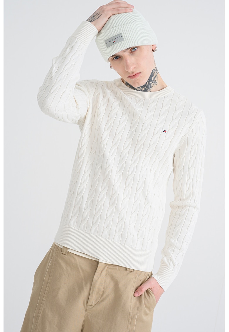 Относно Пуловер от органичен памук с плетка осморка – Бял Tommy Hilfiger