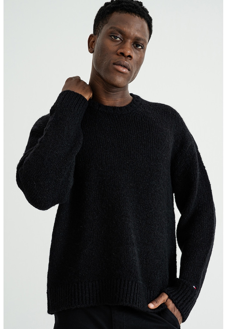 Пуловер с вълна алпака с паднали ръкави – Черен Tommy Hilfiger