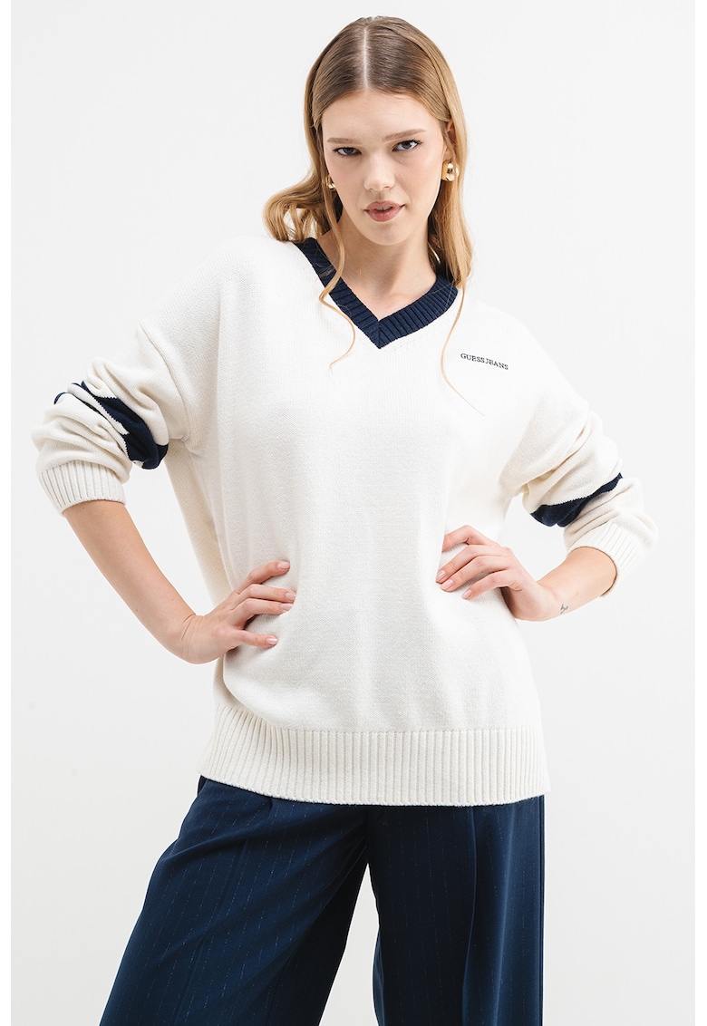 Пуловер с вълна – Бял/Тъмносин GUESS JEANS
