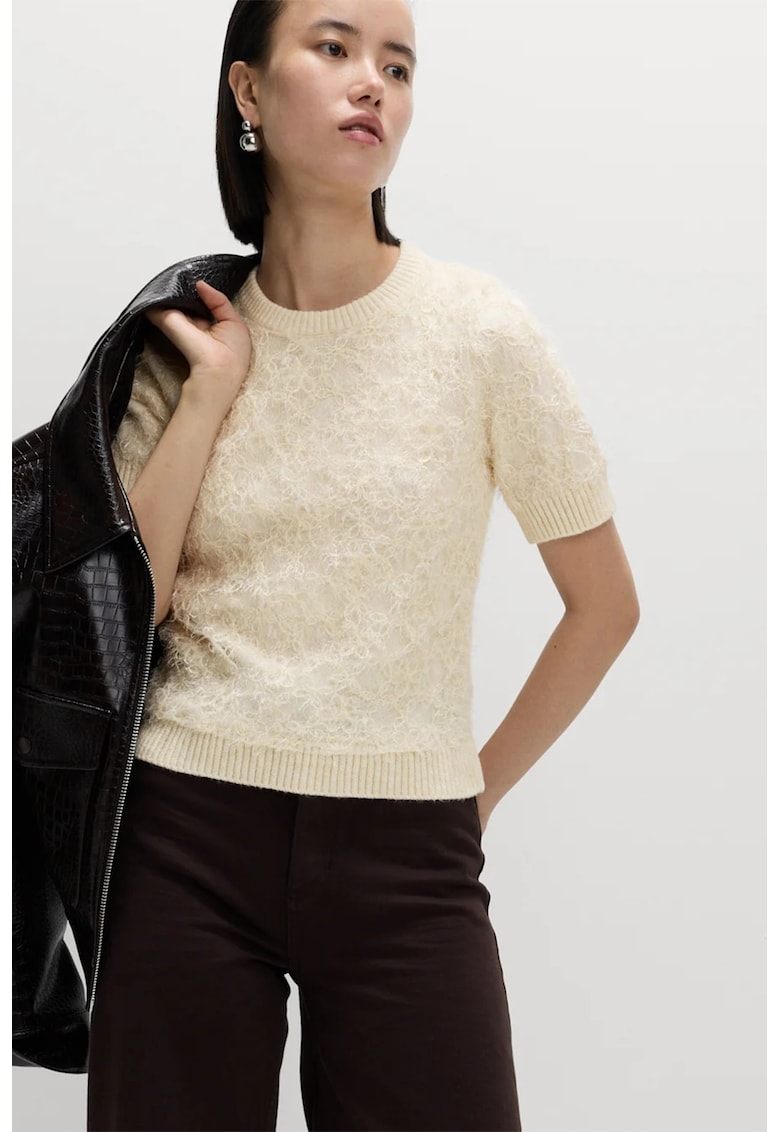 Пуловер с вълна с дантела – Слонова кост Marks Spencer