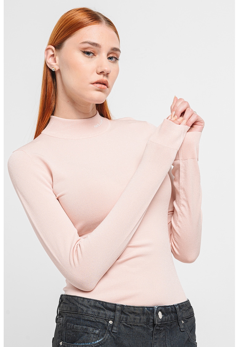 Пуловер с ниска яка и фина плетка – Бледо розово Karl Lagerfeld