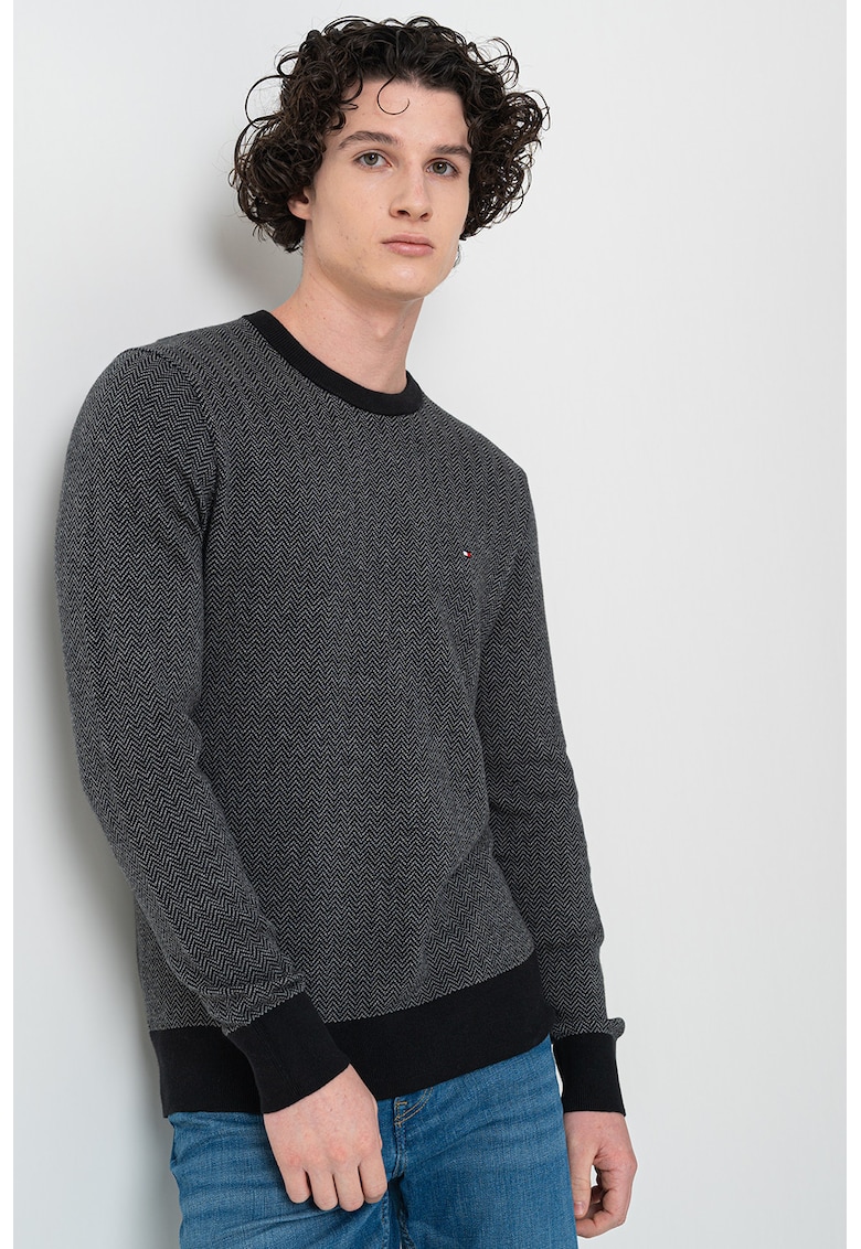 Относно Пуловер с органичен памук с десен – Черен/Мръснобял Tommy Hilfiger