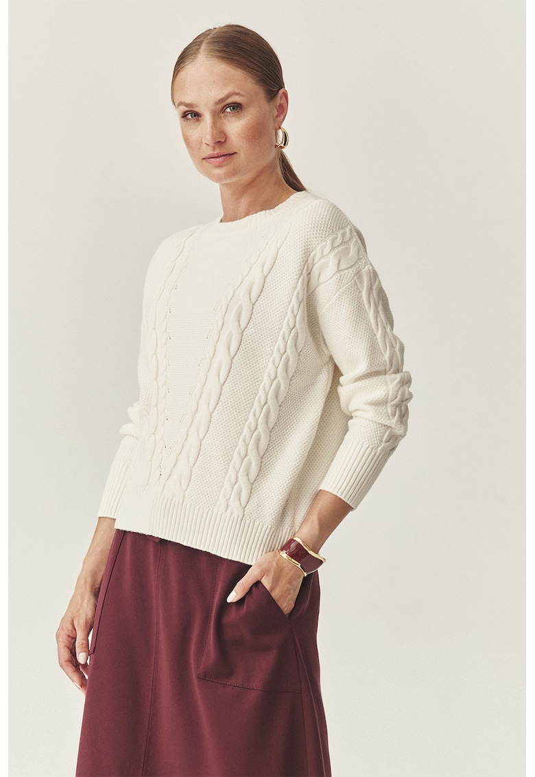 Пуловер с плетка осморка – Бял Tatuum
