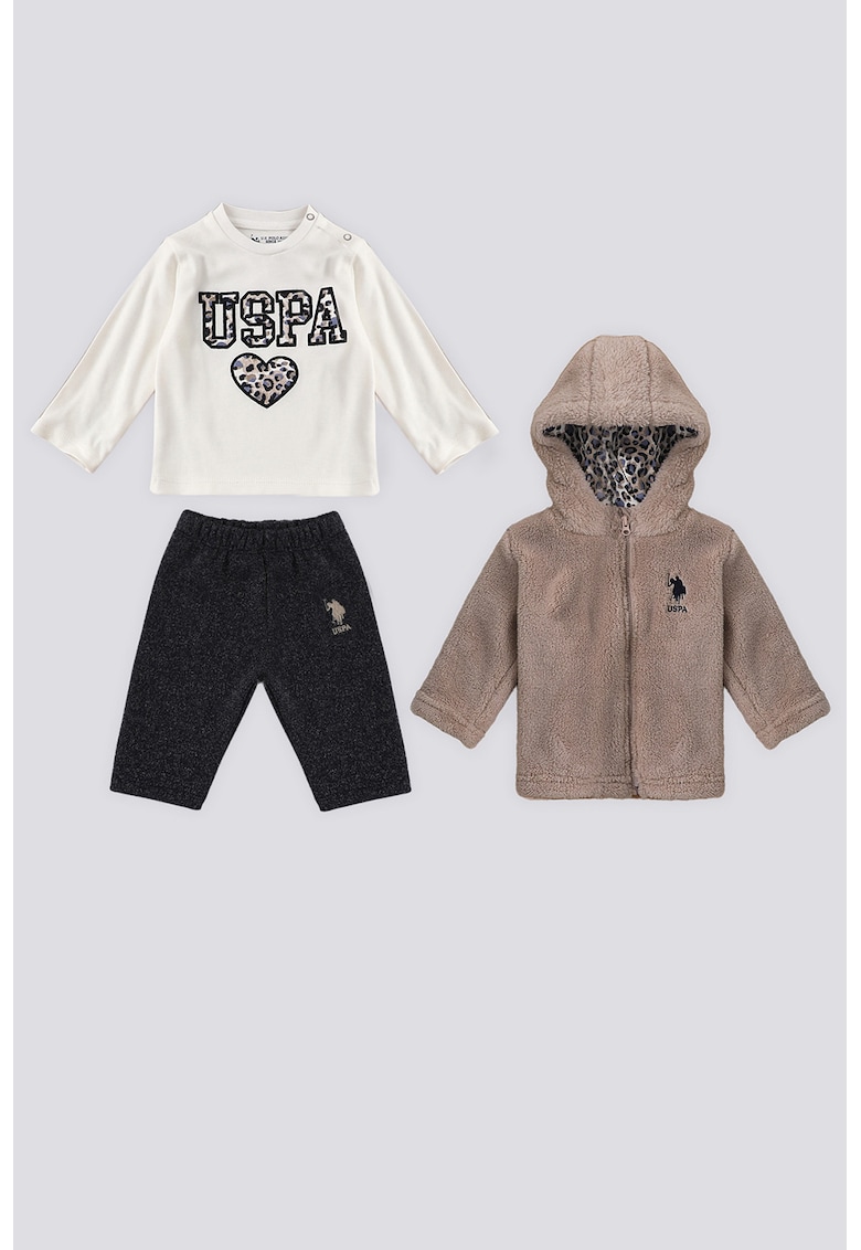 Пухени яке – блуза и панталон – Бял/Светло кафяво/Антрацитно сиво US Polo Assn