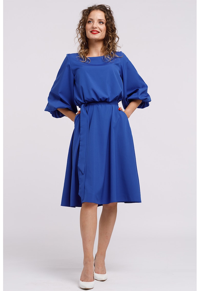 Относно Разкроена миди рокля с връзка – Кралско Синьо на CAMISSI