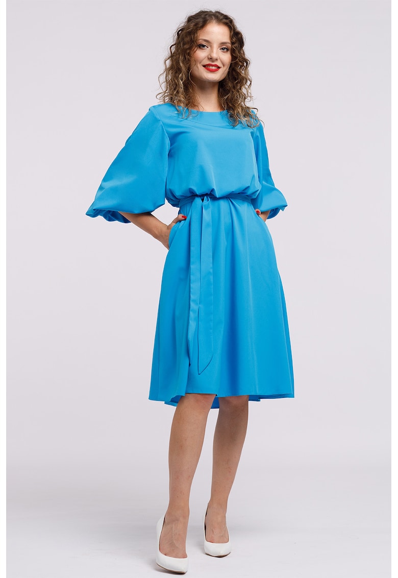 Относно Разкроена миди рокля с връзка – Небесносин на CAMISSI