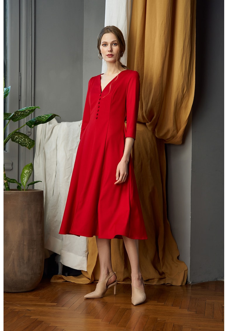 Разкроена миди рокля с шпиц – Аленочервен Noria Anis