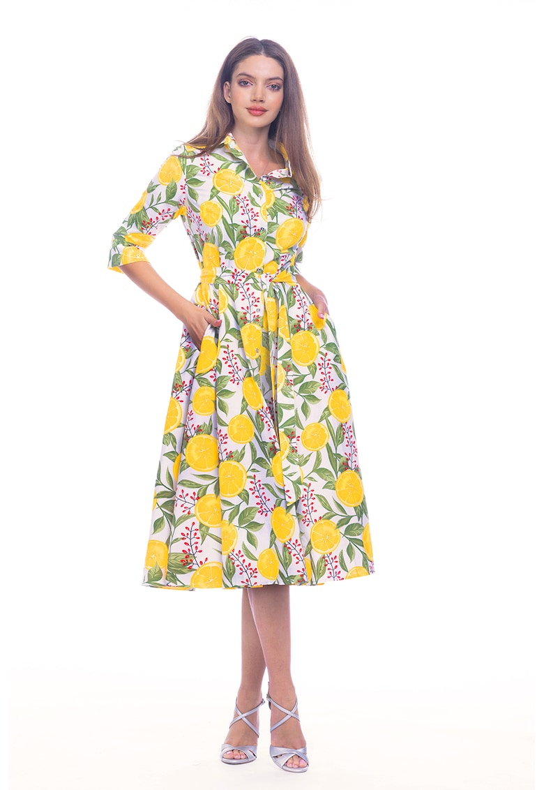 Разкроена рокля-риза с колан – Червен/Зелен/Жълт CAMISSI