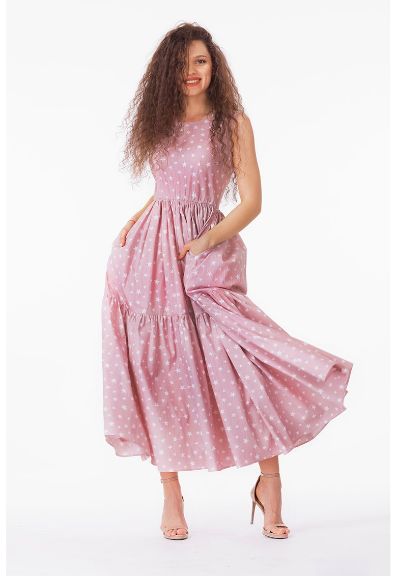 Разкроена рокля с джобове встрани – без ръкави – Бял/Прашно розово CAMISSI на ниска цена