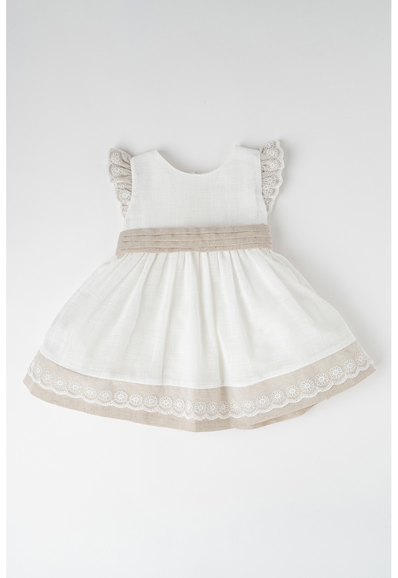 Разкроена рокля с лен и панделка – Бял/Сиво-кафяв Mayoral