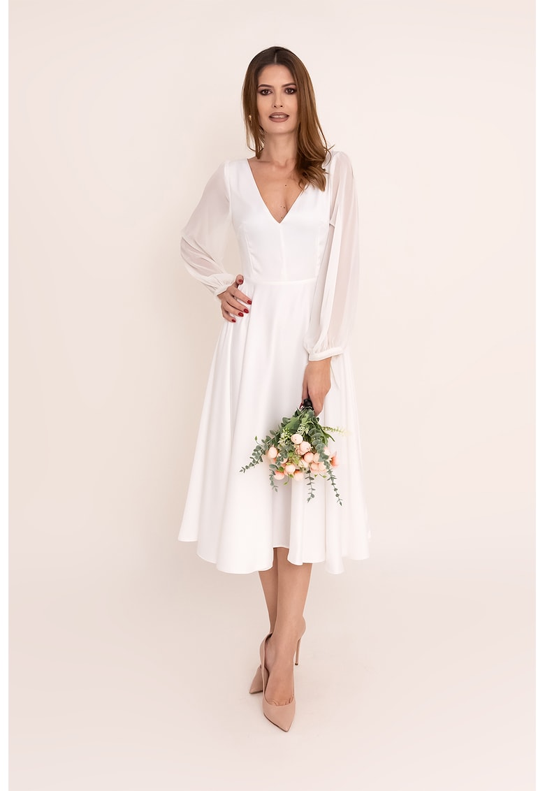 Разкроена рокля Helena с шпиц – Бял Ilona Andreoiu на ниска цена