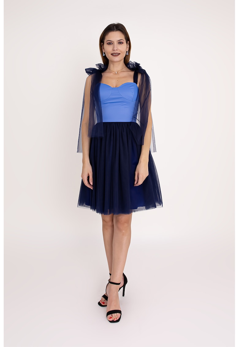 Разкроена рокля Marina с тюл – Син Ilona Andreoiu