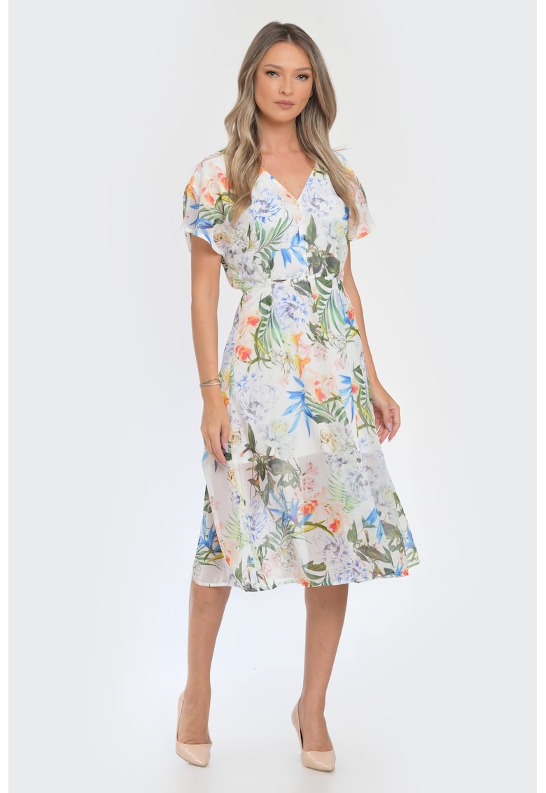- Висококачествени материи – Разкроена флорална рокля – Зелен/Слонова кост GIORGAL е продукт изработен от най-добрите материи, осигуряващи комфорт и стил.