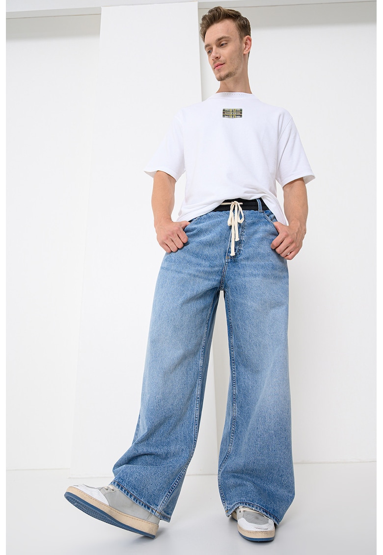Разкроени дънки с връзка на талията – Избеляло черно/Светлосин HUGO