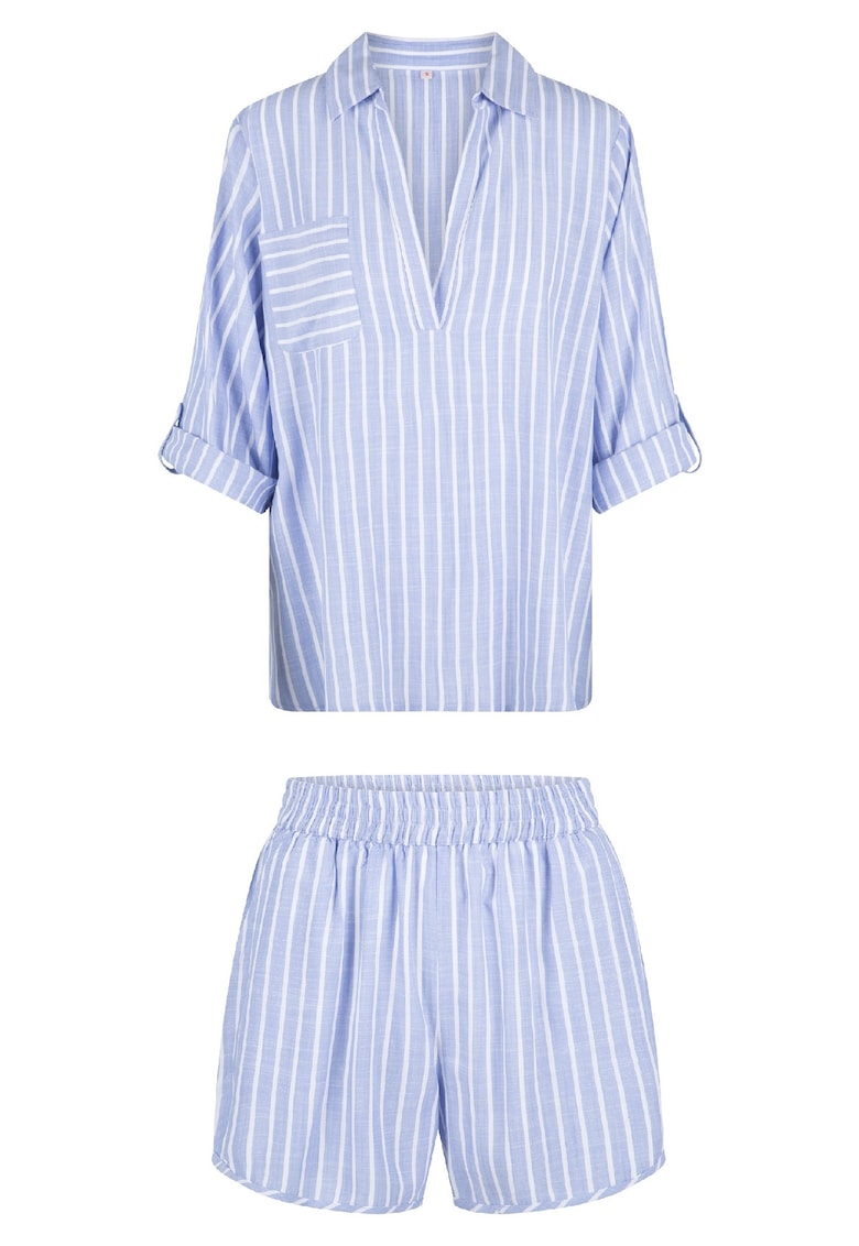 Раирана пижама с регулируеми ръкави – Бял/Син LingaDore
