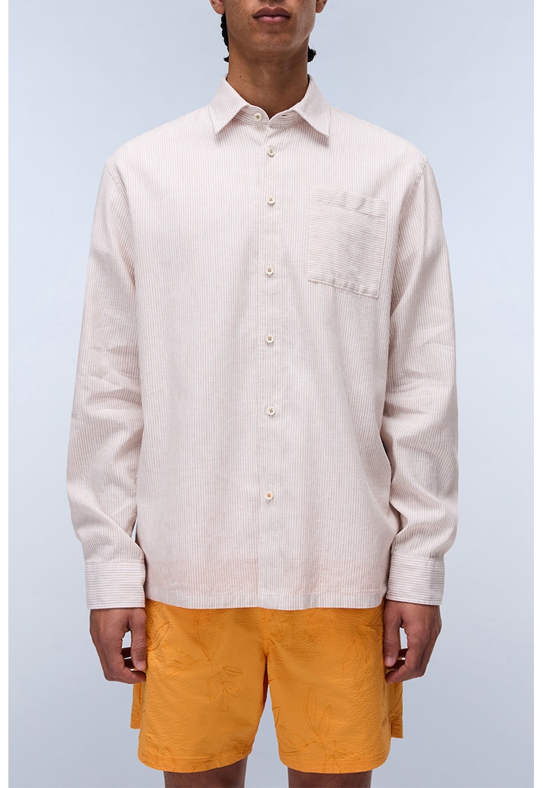 Раирана риза с лен с джоб – Бял/Бледо розово Napapijri