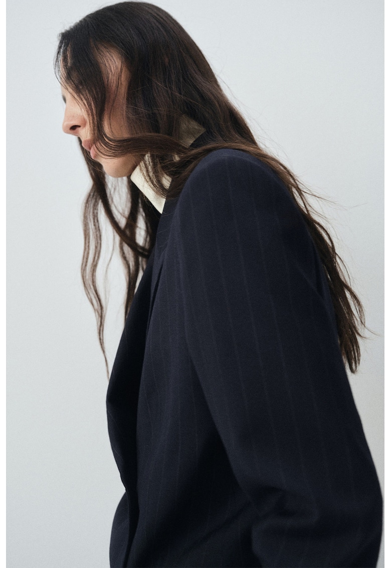 Раирано сако с модал и вълна на райе – Тъмносин Mango
