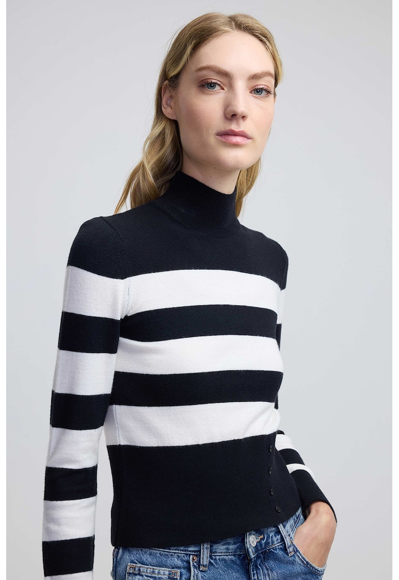 Раиран пуловер с висока яка – Слонова кост/Черен Ipekyol