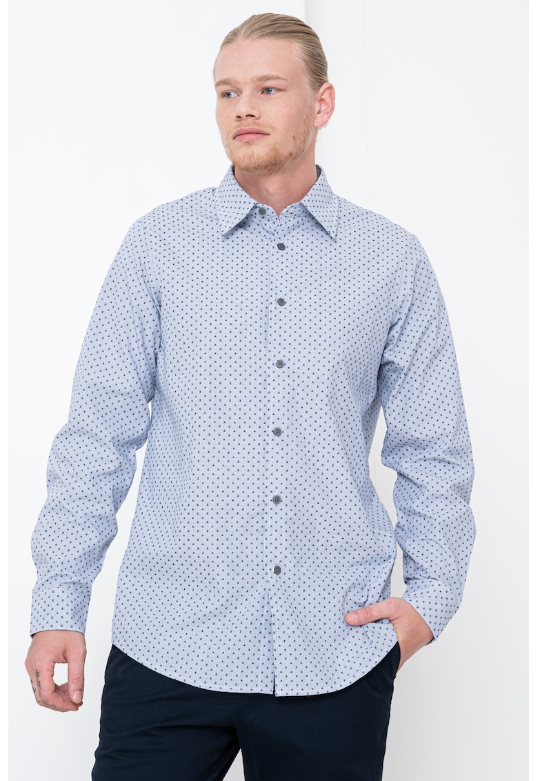 Риза с десен и класическа яка – Бял/Черен/Кралско Синьо ARMANI EXCHANGE