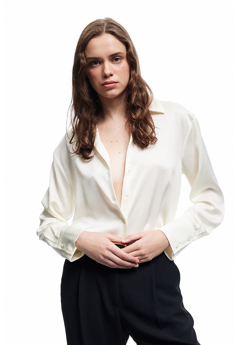 Характеристики Цвят: слонова кост Принт: без принт Стил: ежедневен Материал: полиестер Кройка: стандартна Дължина ръкав: дълъг ръкав Закопчаване: копчета Състав Външна част: 100% полиестер
