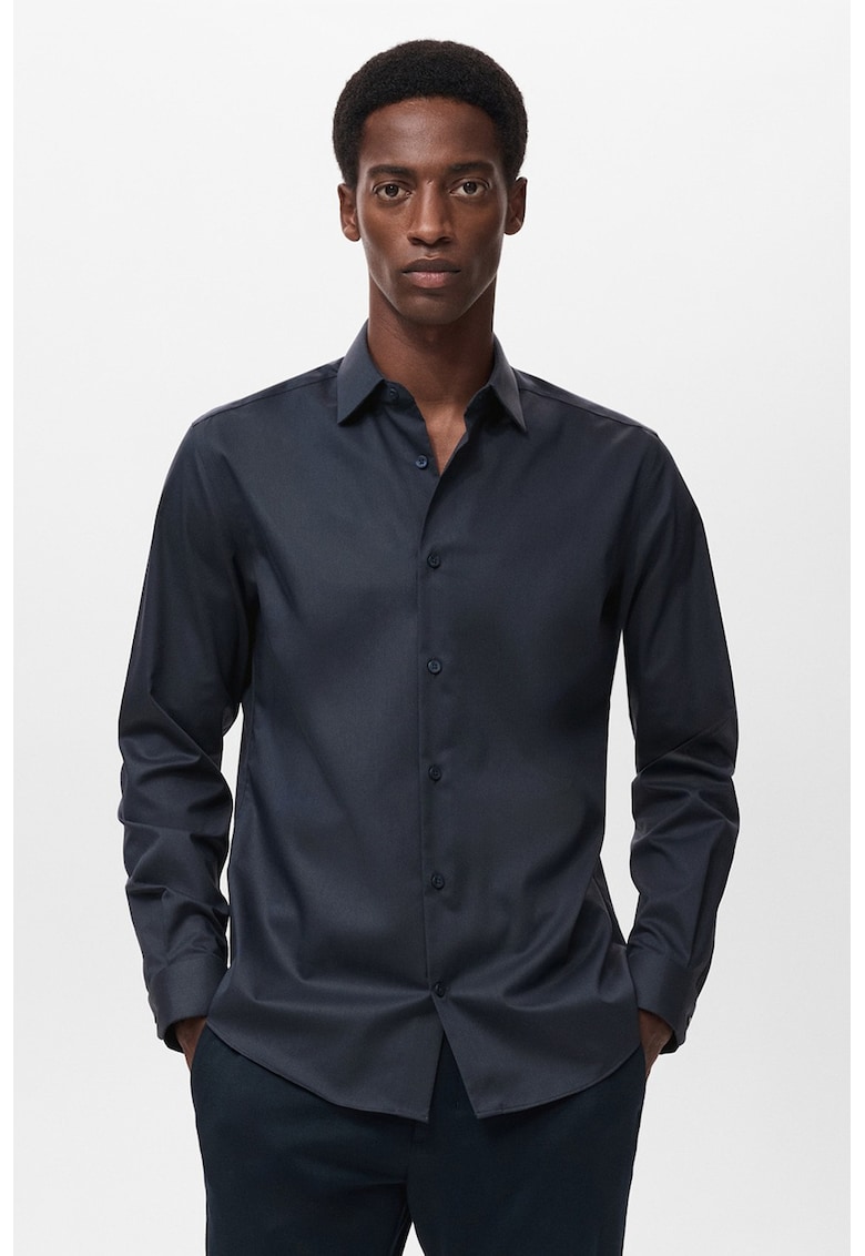 Характеристики Цвят: тъмносин Материал: синтетичен – памук – еластан Принт: без принт Стил: ежедневен Кройка: стандартна Яка: класическа Дължина ръкав: дълъг ръкав Състав Външна част: 77% памук – 21% полиестер – 2% еластан