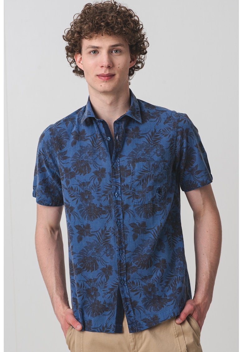 Характеристики Цвят: тъмносин Материал: памук Принт: тропически Стил: ежедневен Кройка: стандартна Яка: заострена Дължина ръкав: къс ръкав Джобове: 1 на гърдите Закопчаване: копчета Състав Външна част: 100% памук Информация за модел Моделът е облечен с размер M. Размер на …