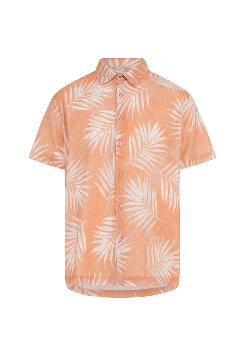 Риза с лен и памук с принт – Бял/Розова сьомга GUESS