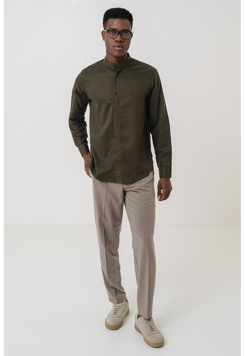 Риза с лиосел и лен с яка Henley – Тъмно каки ARMANI EXCHANGE