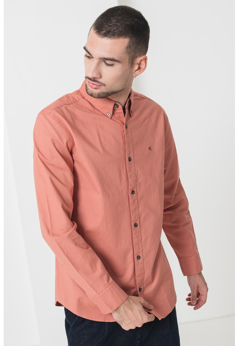 Риза с памук с копчета на яката – Бледочервен CALVIN KLEIN JEANS