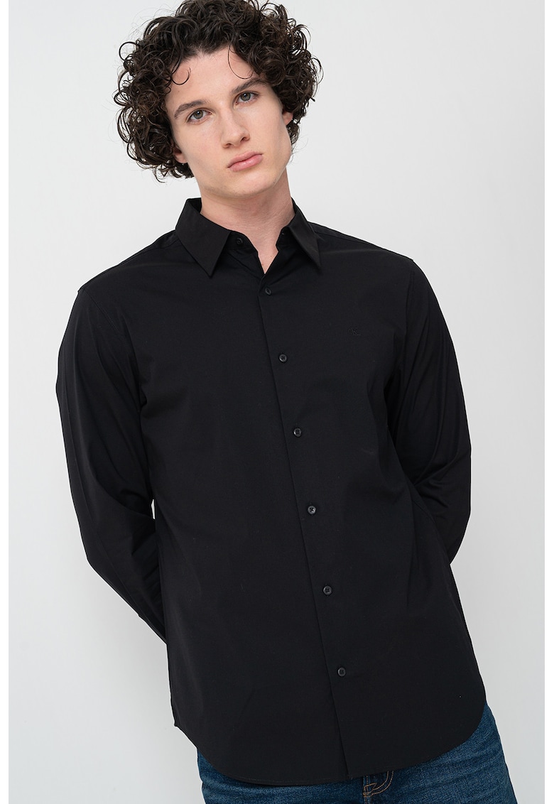 Характеристики Цвят: черен Материал: памук Принт: без принт Стил: ежедневен Кройка: по тялото Яка: заострена Дължина ръкав: дълъг ръкав Закопчаване: копчета Състав Външна част: 96% памук – 4% еластан Информация за модел Моделът е облечен с размер M. Размер на модела: 189 cm …