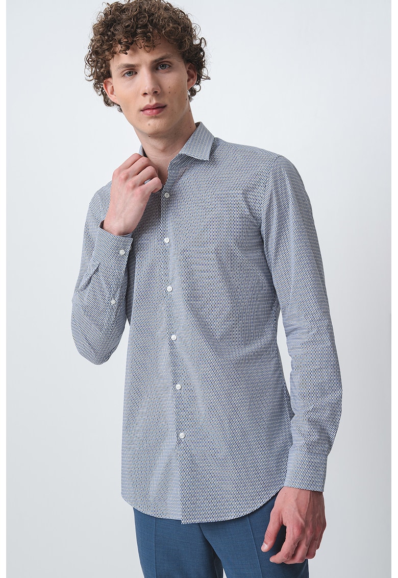 Риза Keno с дълги ръкави и десен – Бял/Черен/Син HUGO