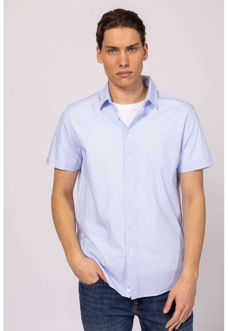 Характеристики Цвят: бял – лавандула Материал: памук Принт: без принт Стил: елегантен Кройка: стандартна Дължина ръкав: къс ръкав Закопчаване: копчета Състав Външна част: 100% памук