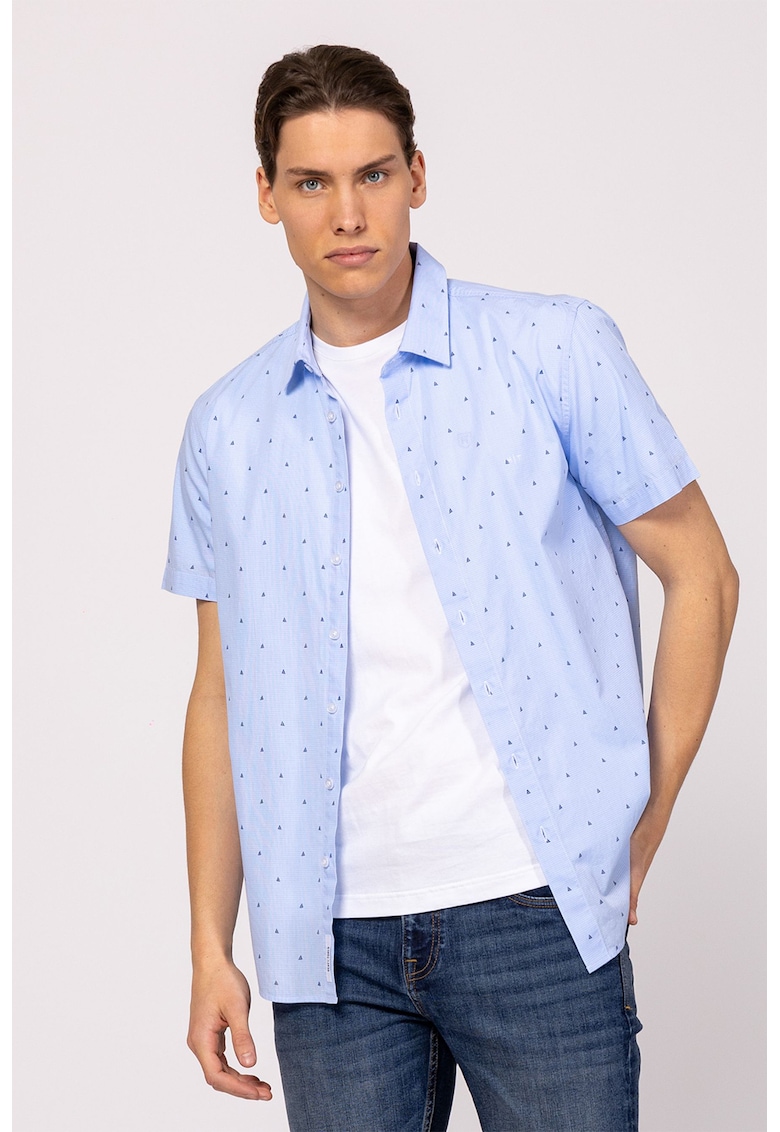 Характеристики Цвят: бял – лавандула – тъмносин Материал: памук Принт: графичен Стил: ежедневен Кройка: стандартна Дължина ръкав: къс ръкав Закопчаване: копчета Състав Външна част: 100% памук