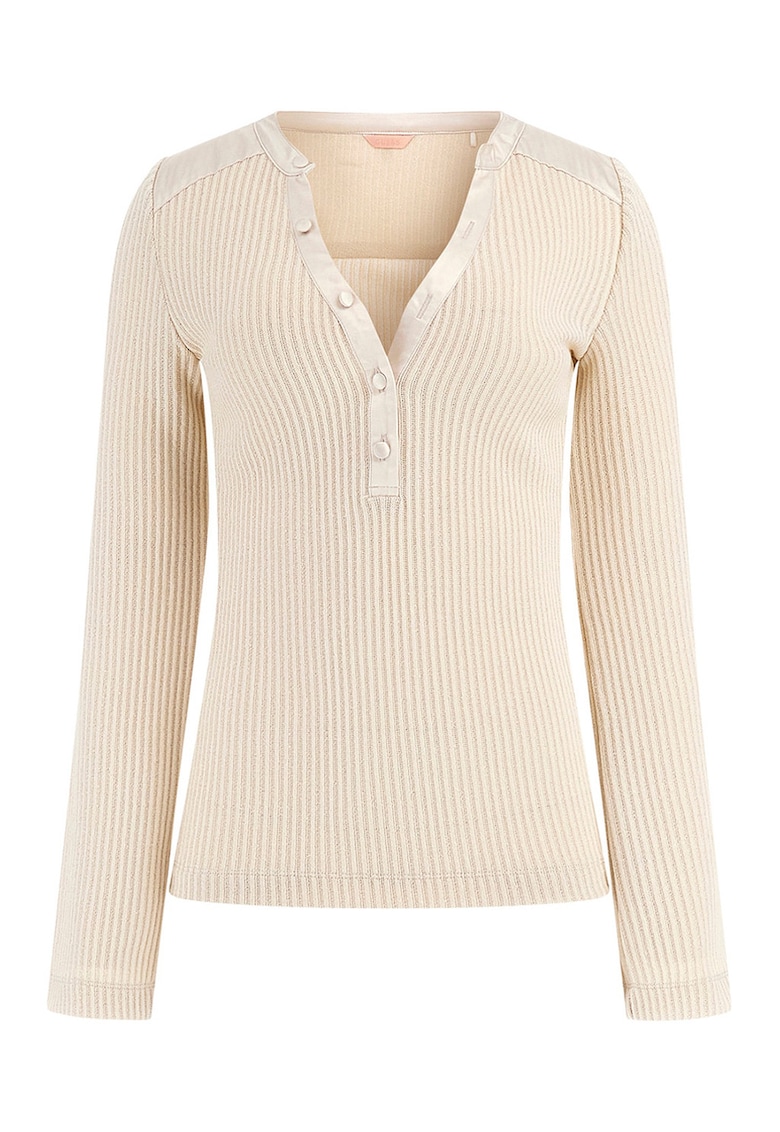- Качество и издръжливост – Рипсена блуза с цепка с копчета – Крем GUESS – изработени от висококачествени материали, които осигуряват комфорт и дълготрайност.