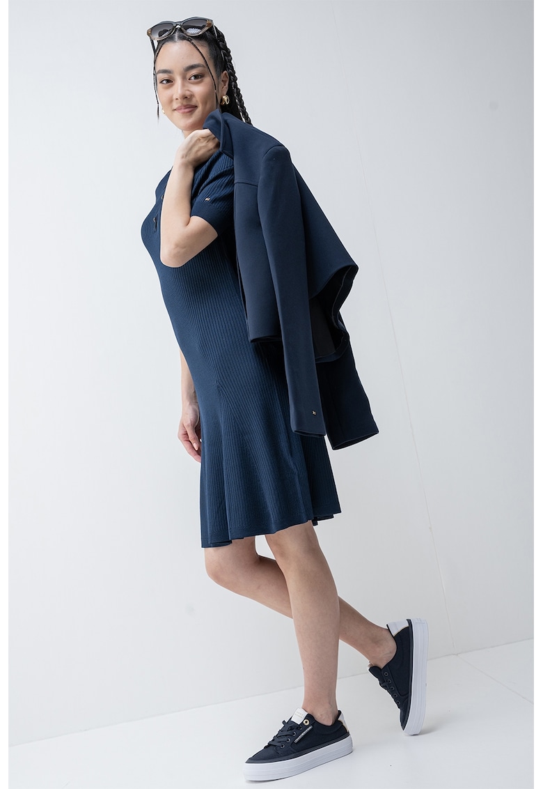 Рипсена рокля с яка и къси ръкави – Тъмносин Tommy Hilfiger