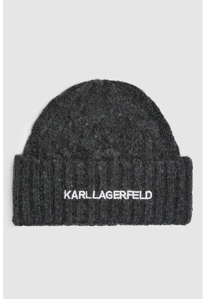 Рипсена шапка с вълна – Антрацитно сиво Karl Lagerfeld