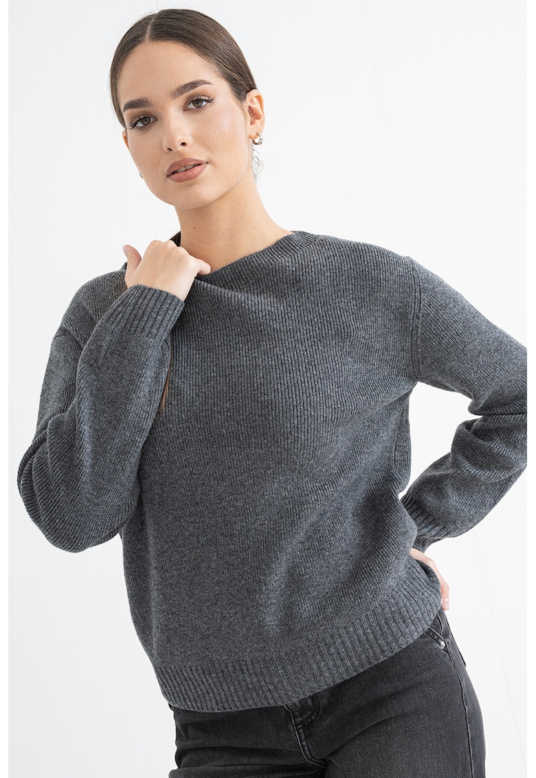 Рипсен пуловер с вълна с деколте тип лодка – Tъмносив Stefanel