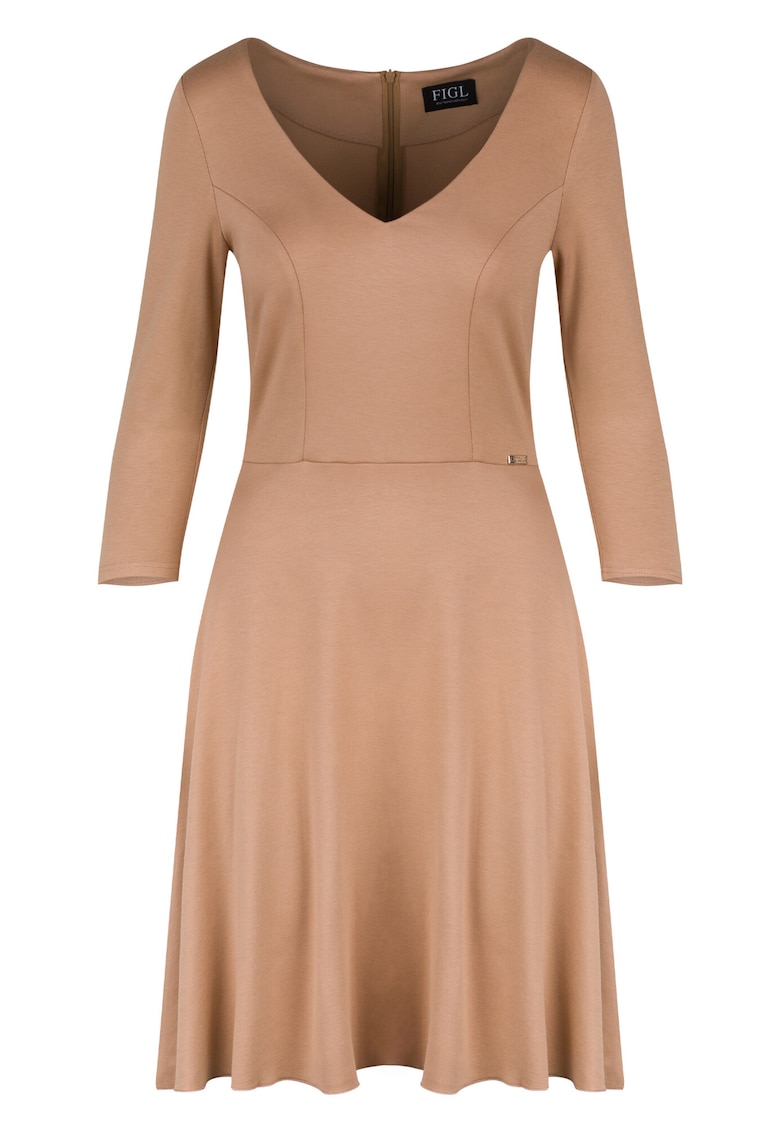 Рокля елегантна – бежова – V-образно деколте – 3/4 ръкав – вискоза Figl