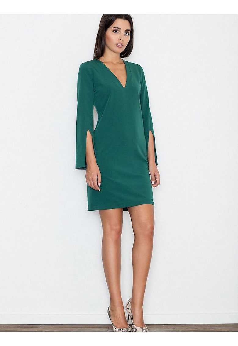 - Висококачествени материи – Рокля елегантна – зелена – ръкави с цепки – материал полиестер Figl е продукт изработен от най-добрите материи, осигуряващи комфорт и стил.