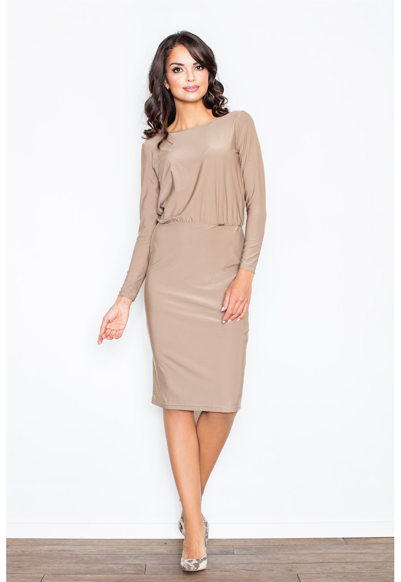 Рокля елегантна – цепка на гърба – бежова – течна – полиестер Figl