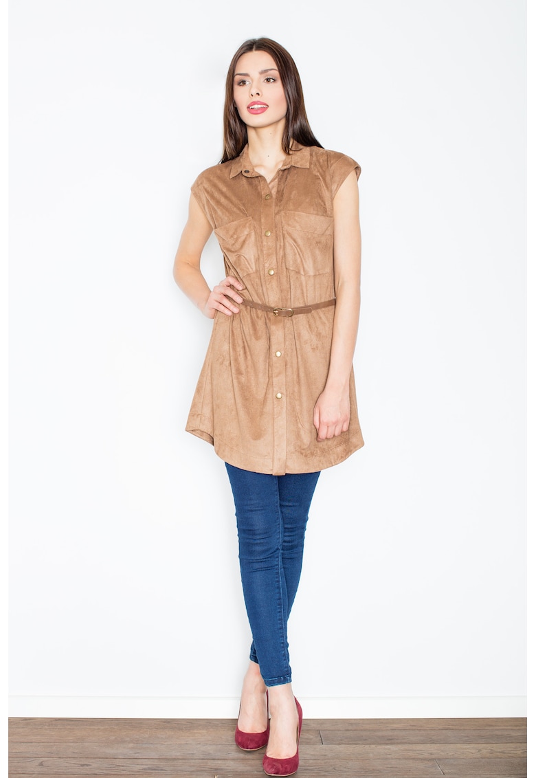 Относно Рокля кафява – велур – с копчета и колан – полиестер на Figl